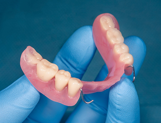 Removable partial dentures usually consist of replacement teeth attached to pink or gum-colored plastic bases, which are connected by metal framework. Removable partial dentures attach to your natural teeth with metal clasps or devices called precision attachments. Precision attachments are generally more esthetic than metal clasps and are nearly invisible. Crowns on your natural teeth may improve the fit of a removable partial denture and they are usually required with attachments. Partials with precision attachments generally cost more than those with metal clasps.